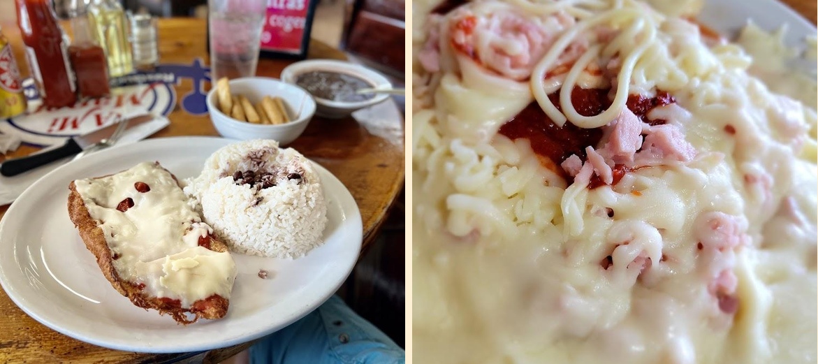 Don’t miss the fried sweet plantains and daily special beans. Pair them with a refreshing Materva or coconut water for the perfect meal.